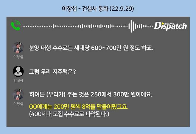 '디스패치'는 이창섭과 (도시개발) 조합장의 통화 녹취(2021년 5월)를 입수했다.