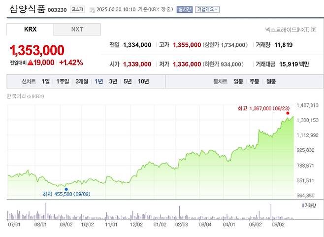 ◆최고가 연일 쓰는 삼양식품