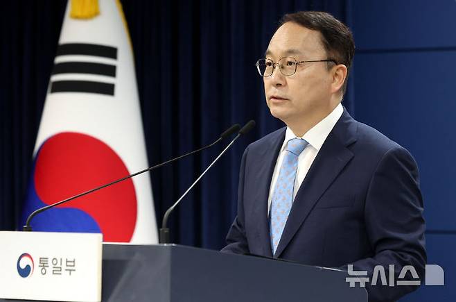 [서울=뉴시스] 추상철 기자 = 구병삼 통일부 대변인이 30일 오전 서울 종로구 정부서울청사에서 현안 관련 정례브리핑을 하고 있다. 2025.06.30. scchoo@newsis.com
