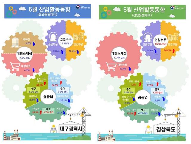 대구 광공업생산 작년보다 6.7% 줄어, 경북은 3.0% 감소
