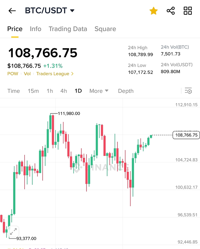 중동 전쟁으로 기록했던 9만8200달러와 비교하면 약 일주일만에 10.75%나 반등했다.