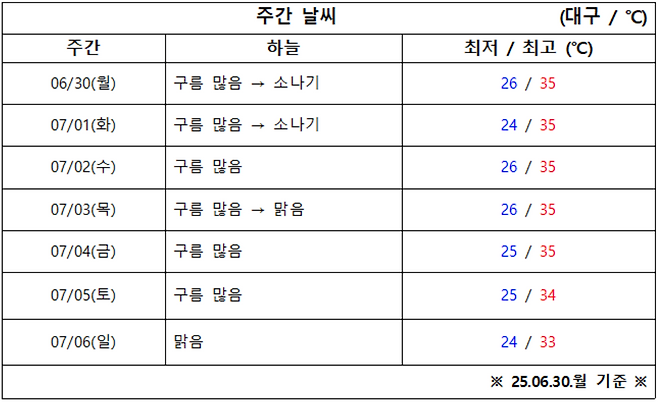 6월 마지막 주 대구·경북 ‘날씨 체크’ 시작합니다.