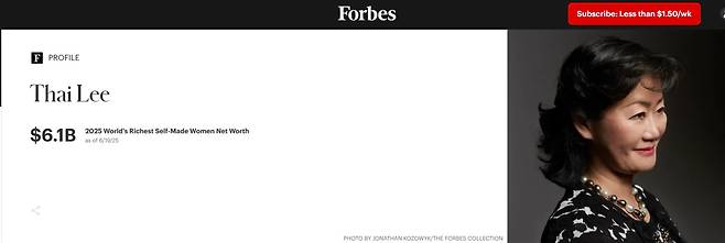| ▲ 포브스는 2025년 '자수성가한 여성 부호' 5위로 타이 리를 선정했다. |