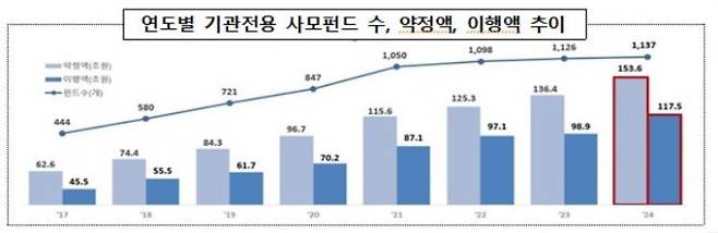 30일 금융감독원이 발표한 '2024년 기관전용 사모펀드 운용 현황 및 시사점'에 따르면 작년 기관전용 PEF의 투자집행 규모는 총 24조1000억원으로 집계됐다.