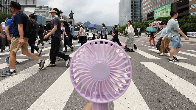 ▲ 서울 전역에 폭염주의보가 발효된 30일 서울 세종대로 사거리에서 시민들이 이동하고 있다.