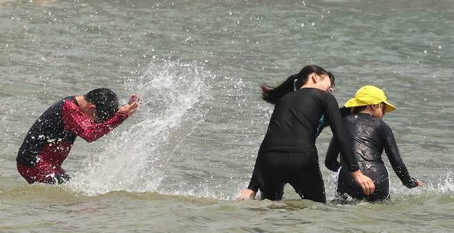 [폭염에 시원한 물놀이 (연합뉴스 자료사진)]