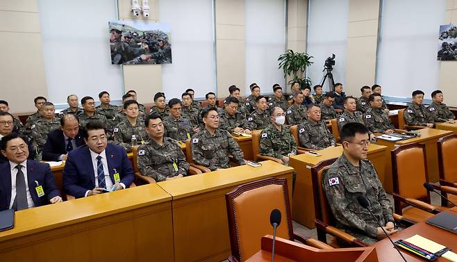 | ▲ 2024년 12월 10일 계엄사령관을 맡았던 박안수 육군참모총장과 이진우 전 수도방위사령관, 곽종근 전 육군특전사령관 등 관계자들이 서울 여의도 국회 국방위원회 전체회의에 출석하고 있다. |