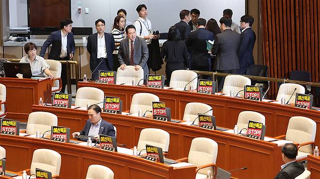 앞서 오전 예결위 전체회의에서 국민의힘은 여당이 사전 협의 없이 일방적으로 심사 일정을 결정했다며, 종합정책질의를 오늘 하루가 아닌 이틀간 진행해야 한다고 요구했습니다.