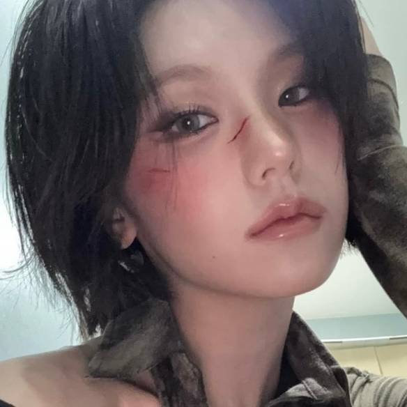 최근 ‘Girls will be girls’ 활동으로 리즈를 찍었다는 있지 예지. 얼굴에 스크래치를 메이크업으로 연출했다. 그녀의 시크한 매력과 상처 연출이 잘 어울린다.