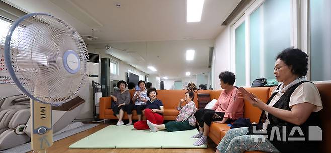 [서울=뉴시스] 김선웅 기자 = 전국 대부분 지역에 체감온도가 33도를 넘어서는 등 서울 전역에 폭염주의보가 발령된 30일 오후 서울 시내의 한 무더위쉼터에서 어르신들이 더위를 피하고 있다. 2025.06.30. mangusta@newsis.com