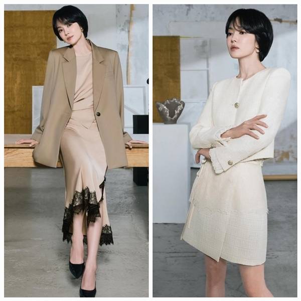 공개된 사진에서는 가을의 광택을 닮은 레더 셋업부터, 겨울을 품은 크림 트위드, 모던한 블랙 셔링 원피스, 그리고 따스한 브라운 슬릿 드레스까지 총 4가지 룩을 완벽하게 소화했다. 특히 각기 다른 소재와 톤에서도 느껴지는 공통점은 단 하나였다. ‘송혜교는 어떤 의상도 송혜교답게 만든다’는 점이었다.