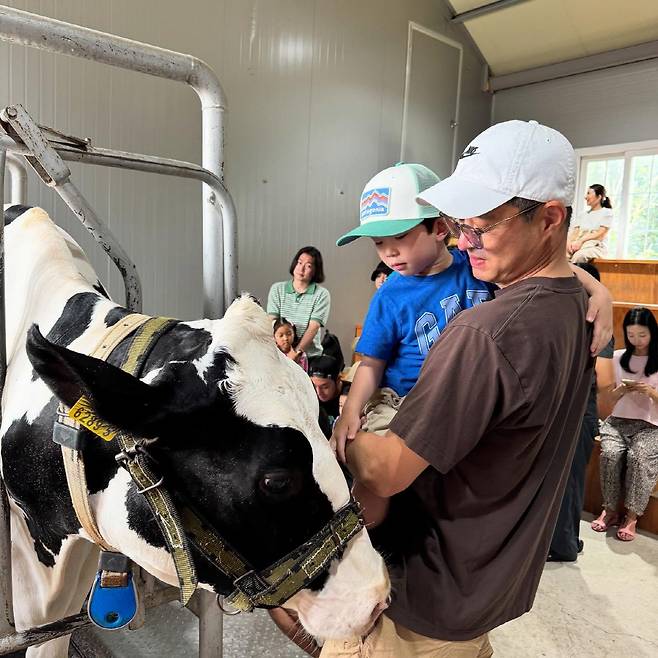 임사라는 "주말엔 우리집 송아지 데리고 진짜 송아지 보러"라며 송아지 농장을 찾은 모습을 공개했다.