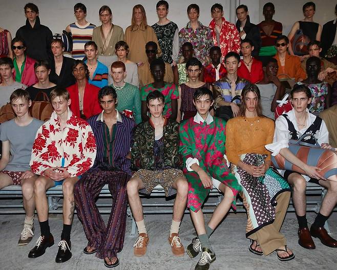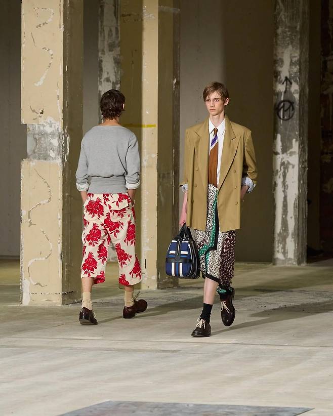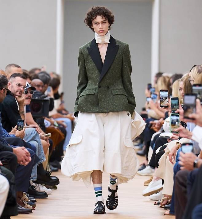 달콤쌉싸름한 1990년대의 향기 새로운 크리에이티브 디렉터 줄리안 클라우스너 는 첫 남성복 컬렉션을 통해 1990년대에 찬사를 보냈습니다. 과일 프린팅 셔츠, 럭비 니트, 랩스커트가 조화롭게 어우러지며 복고적이면서도 세련된 무드를 연출했죠. 톡톡 튀는 색감과 경쾌한 실루엣은 새로운 세대에게는 신선함, 기존 팬들에겐 반가운 회고로 다가왔습니다.
