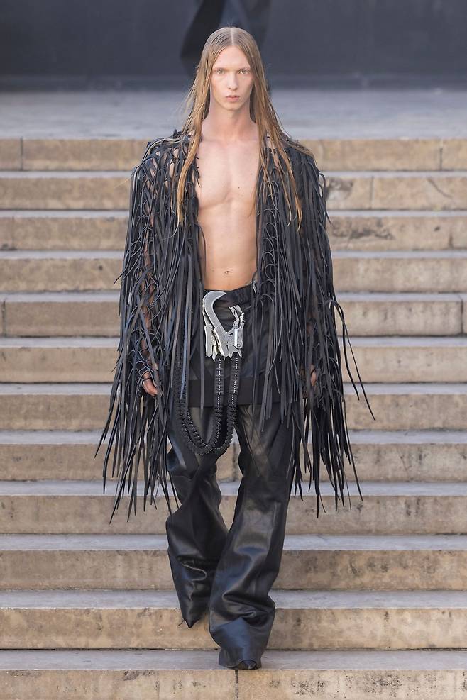 다크 로맨티시즘을 향한 끝없는 탐구 이번 시즌 릭 오웬스 는 어둡고 관능적인 신전으로 향했습니다. 릭 오웬스의 대규모 회고전이 열린 파리의 팔레 갈리에라를 배경으로 뉴욕 펑크 밴드 수어사이드와 협업한 해체적 가죽 재킷과 극적인 드레이핑이 모습을 드러냈죠. 늘 그렇듯 건축적인 실루엣이 줄을 이었고, 릭 특유의 로맨틱한 고딕 스타일은 여전히 진화 중입니다.