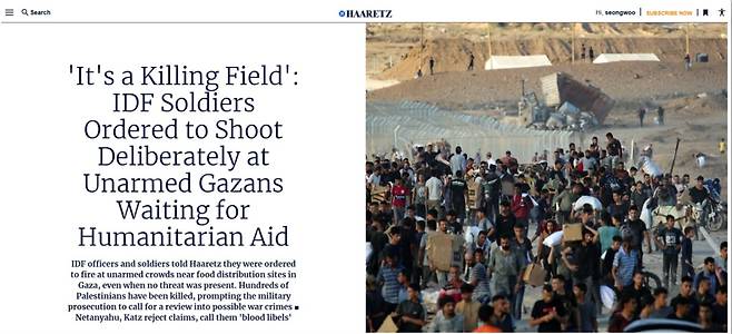 | ▲ 27일(현지시각) 이스라엘 일간지 <하아레츠>는 가자지구에서 복무한 이스라엘 방위군(IDF) 병사와 장교들 다수의 증언을 토대로, 이스라엘군이 식량 배급소 인근에서 가자지구 민간인을 향해 고의로 발포해 사망자가 발생했다고 밝혔다. |