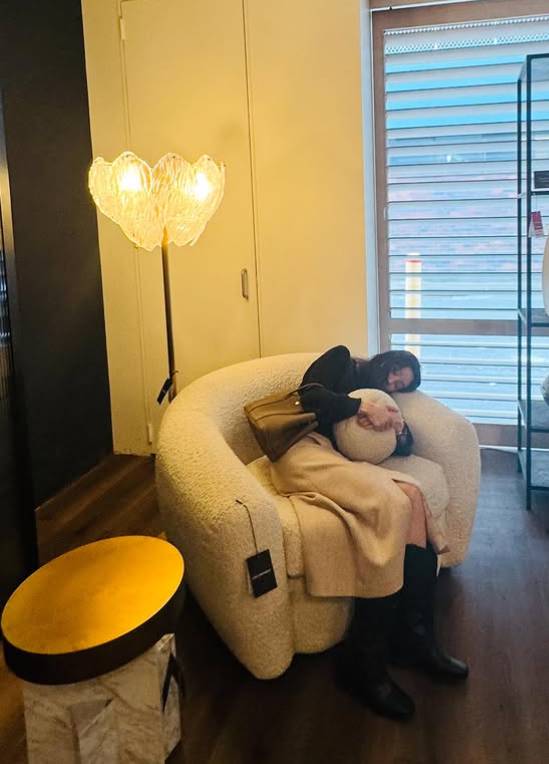 바쁜 일상 속에서도 자기 관리는 빼놓지 않았다. 필라테스 기구에 앉아 거울 셀카를 찍으며 운동으로 다져진 건강미를 자랑했고 때로는 포근한 의자에 몸을 웅크리고 잠시 단잠에 빠진 모습으로 친근하고 인간적인 매력을 더했다.