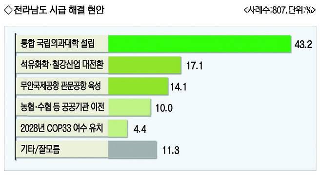 [남도일보 여론조사]전남, 가장 시급한 현안과제 ‘통합 국립의대’