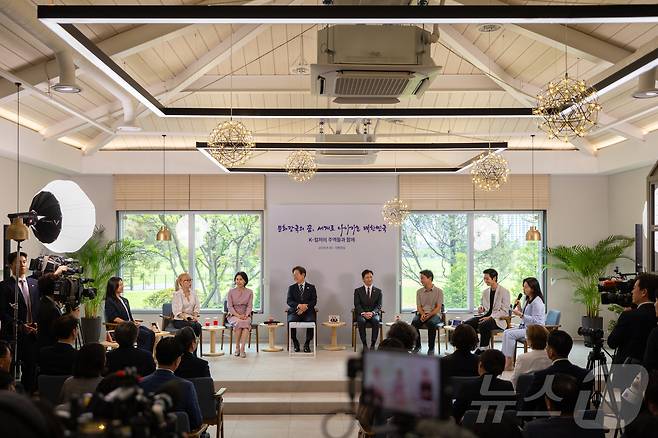 (서울=뉴스1) 이재명 기자 = 이재명 대통령이 30일 서울 용산 대통령실 파인그라스에서 열린 문화예술계 수상자 간담회에 참석해 있다. (대통령실 제공. 재판매 및 DB 금지) 2025.6.30/뉴스1