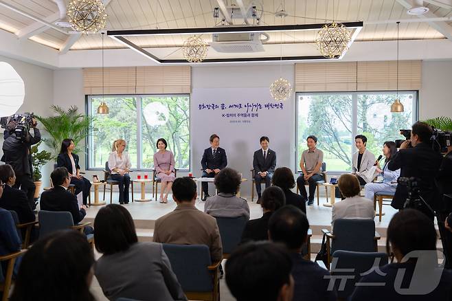 (서울=뉴스1) 이재명 기자 = 이재명 대통령이 30일 서울 용산 대통령실 파인그라스에서 열린 문화예술계 수상자 간담회에 참석해 있다. (대통령실 제공. 재판매 및 DB 금지) 2025.6.30/뉴스1