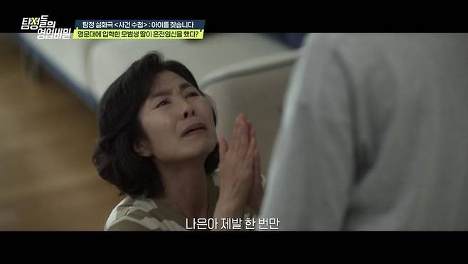 의뢰인은 비싼 과외 없이도 명문대에 입학했던 딸이 한동안 소식이 뜸해지자 우려를 안았다. 이후 집을 찾은 딸은 임신 3개월이라는 사실을 알렸고, 친모와의 갈등이 극심해졌다.