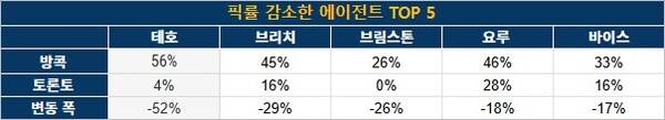 테호 너프 하나로 연쇄적인 상호작용을 일으키며 요원 조합에 전반적인 변화가 찾아온 게 통계적으로 확인됐다. 타격대 '웨이레이'의 버프가 얼마나 큰 영향을 미칠진 모르지만, 당분간 메타가 지속될 것으로 보인다.