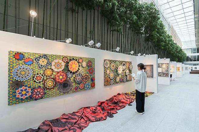 도서관 옆 조명과 식물이 어우러진 대나무 정원에서는 현재 광주예술고와의 협력 전시 ‘잇-다’가 열리고 있다. 한국화과 학생들의 우수작품 50여 점이 전시 중으로 산책하며 함께 감상해볼 만하다.