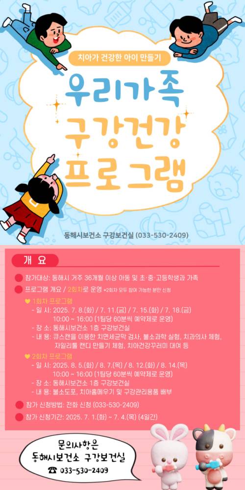 동해시는 여름방학을 맞아 가족들의 구강 건강을 챙겨볼 수 있는 ‘우리가족 구강건강’ 프로그램을 운영한다.