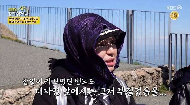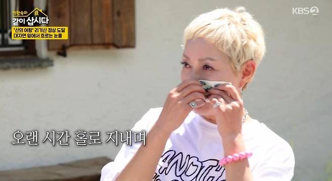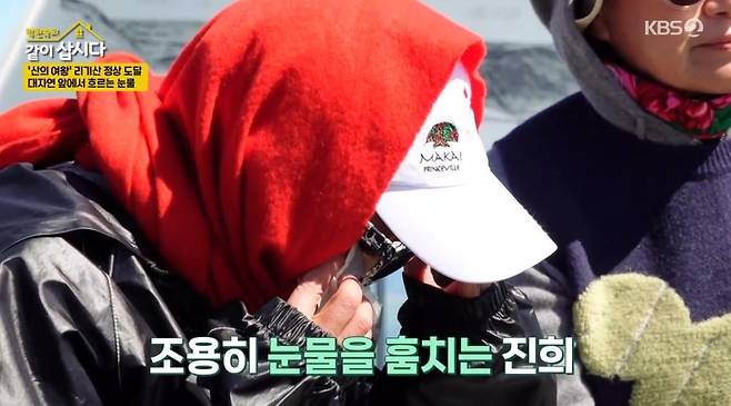이를 듣던 홍진희는 조용히 눈물을 훔쳤다. 홍진희는 "수십 년을 혼자 살면서 남한테 약한 모습을 안 보이기 위해 강한 사람으로 포장해왔다. 그렇게 견디면서 살았다. 산에 올라가 보니 한낱 아무것도 아닌 내가 왜 그렇게 포장하면서 살았을까 싶어서 감정이 격해졌다"라고 털어놓았다.