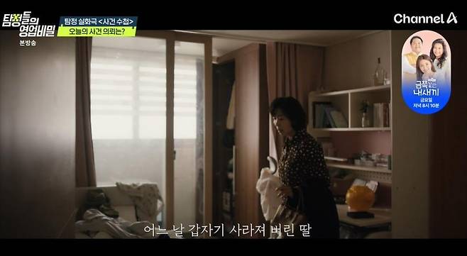 30일 방송된 채널A '탐정들의 영업비밀'의 '사건 수첩' 코너에서는 명문대에 합격했던 20살 딸의 극적인 실종 및 재회 과정이 공개됐다.