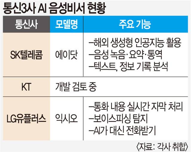 이에 통신사들은 새로운 기능을 계속해서 추가하며 자사 서비스를 대체 불가능한 수준으로 끌어올리려는 노력을 이어가고 있다. SK텔레콤은 이날 에이닷에 ‘노트’와 ‘브리핑’ 등 신기능을 추가한 베타 버전을 출시했다. 음성으로 이뤄지는 모든 과정을 AI로 기록해 남기거나, 일상에서 수집되는 정보를 종합적으로 분석해 정보를 제공한다. LG유플러스도 지난 26일 AI로 위·변조한 딥보이스를 자체적으로 잡아내는 ‘안티딥보이스’를 익시오에 적용하고 ‘안심지능’을 새 트렌드로 제시했다.