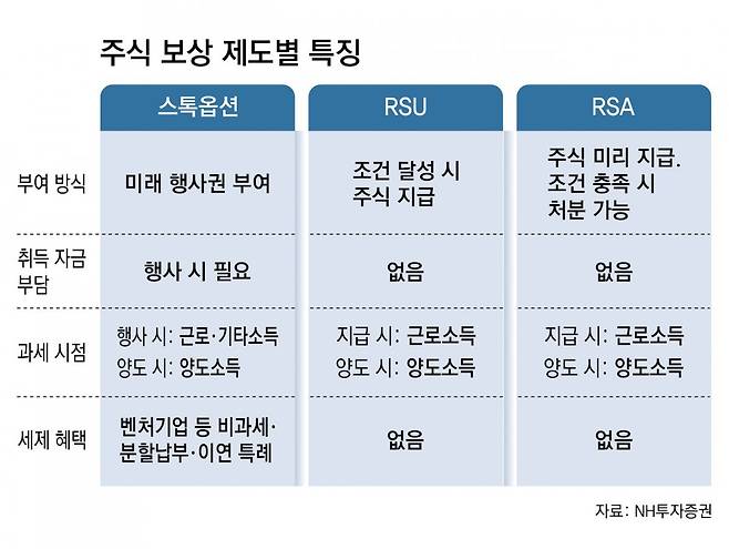 RSU-RSA 등 주식보상 방식 주목