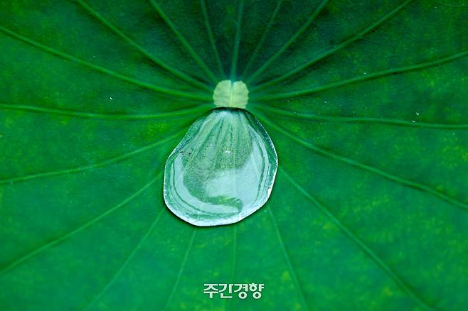 연꽃은 맑은 날보다 비 오는 날에 더 고운 자태를 뽐낸다. 밤새 내린 비로 연잎마다 빗방울이 맺혔고, 넓은 잎 위에는 연잎의 무게가 견딜 수 있을 만큼의 빗물이 고요히 담겨 있었다. 줄기 아래쪽 연잎에 맺힌 작은 물방울들은 서로를 비추며, 마치 거울처럼 영롱한 빛을 더했다.