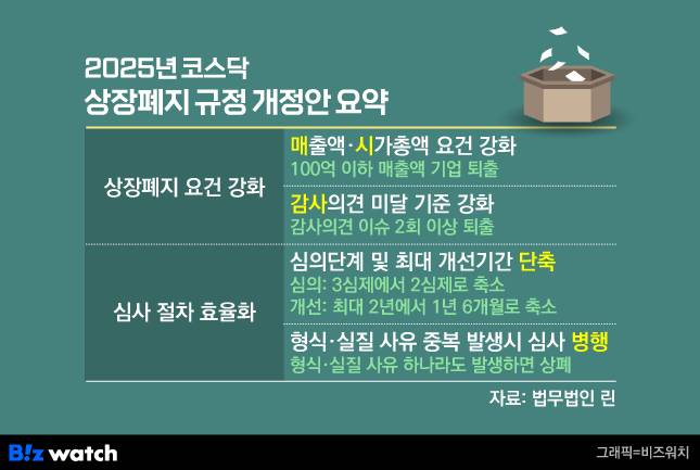 실제로 금융위원회는 지난 1월 '주식시장의 질적 수준 제고를 위한 IPO 및 상장폐지 제도개선 방안'을 통해 상장폐지에 관한 시가총액, 매출액 기준 등을 강화하겠다고 밝혔다.