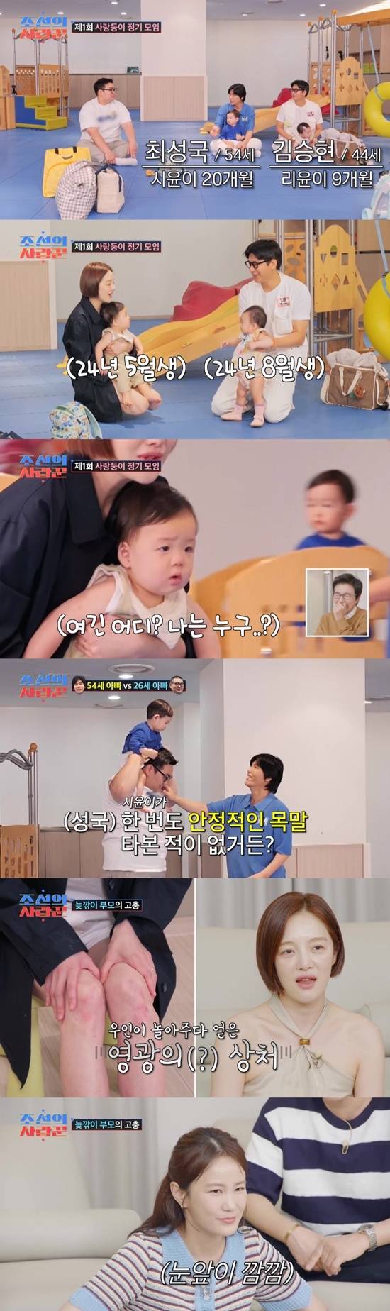 아이들의 기저귀 사정(?)으로 모이는 데만 1시간이 걸릴 정도로 각양각색인 '사랑꾼 2세'들이 총출동했다. 최성국의 아들 시윤, 황보라의 아들 우인, 이경실 손자이자 손보승의 아들인 이훈, 그리고 유일한 홍일점인 김승현의 딸 리윤이 제1회 '조선의 사랑둥이' 정기모임에 함께했다.