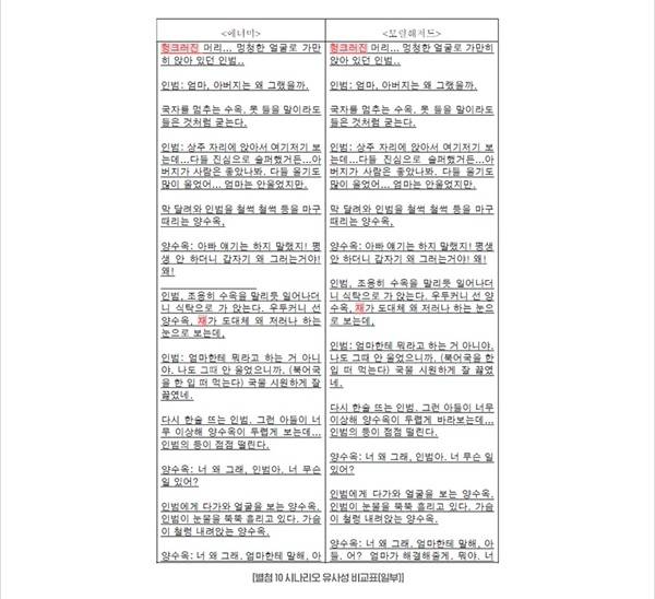 제작사는 '소주전쟁' 시나리오와 박현우의 '에너미' 시나리오의 오타까지 똑같은 부분을 제시, 유사성을 주장하며 시나리오를 일부 공개했다.