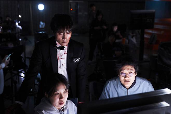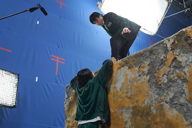의 장대한 여정을 마무리하는 두 사람의 감정을 고스란히 전한다. 가면을 벗고 기훈(이정재)과 대면한 프론트맨(이병헌)의 장면을 촬영 중인 두 배우의 모습도 눈길을 끈다. 제작진들과 함께 촬영한 장면을 모니터링하고 있는 이병헌의 모습에서는 자신의 예상과는 완전히 다른 생각을 가지고 게임에 임하는 기훈의 모습을 지켜보는 프론트맨의 복잡하고 깊은 감정선이 이병헌의 열정과 노력으로 완성될 수 있었음을 짐작하게 한다.