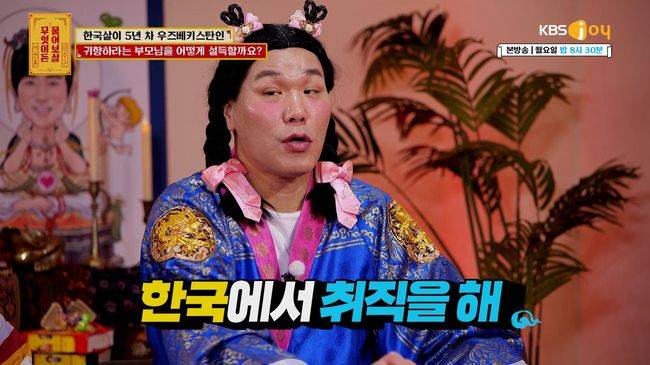 6월 30일 방송된 KBS Joy '무엇이든 물어보살' 322회에는 한국에 계속 살고 싶지만 고향으로 돌아오라는 부모님의 의견 때문에 고민이라는 우즈베키스탄인의 사연이 공개됐다.