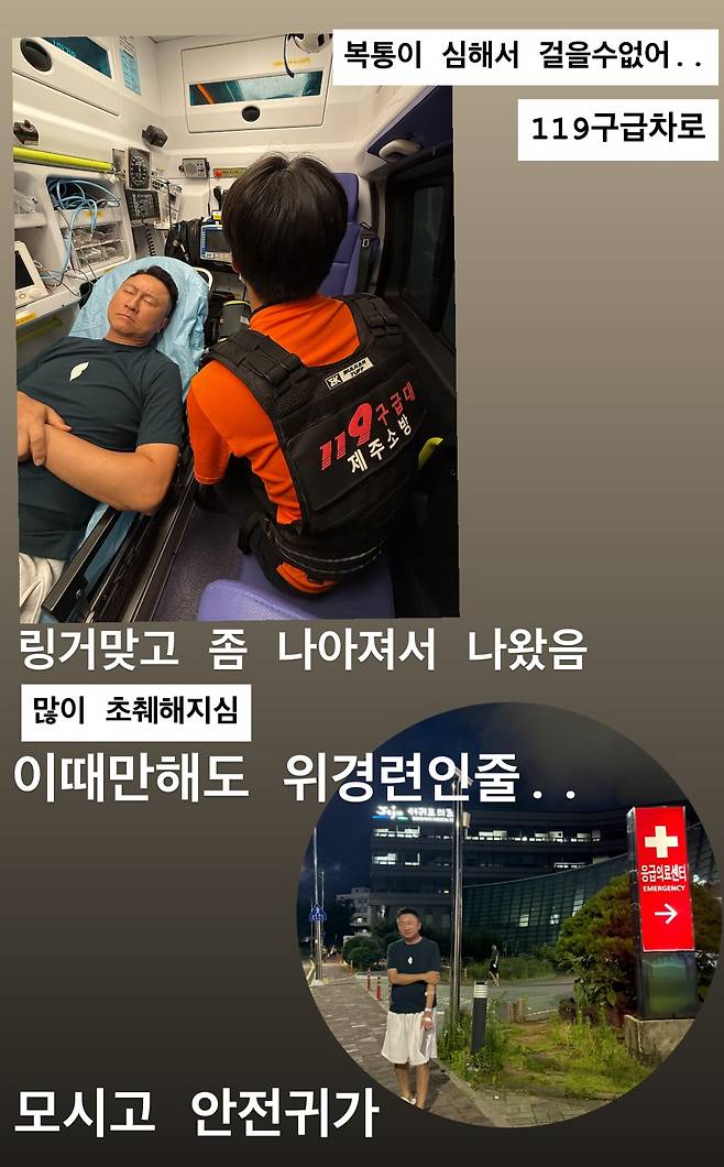배우 이윤미가 제주 여행 중 응급실에 간 사연을 전했다.