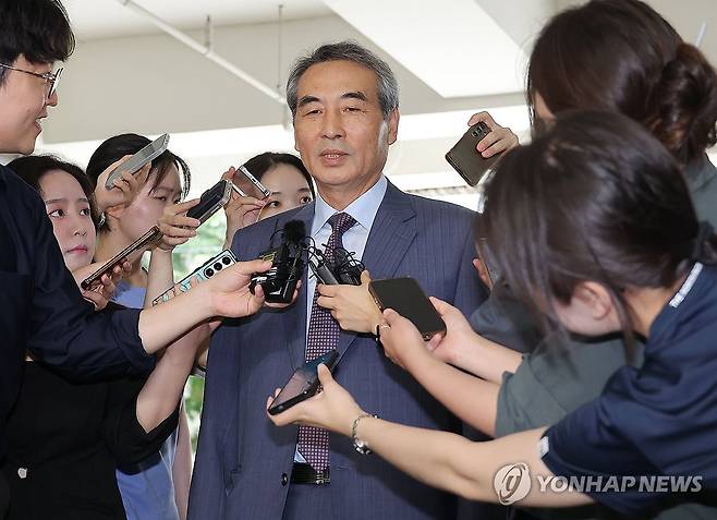 (서울=연합뉴스) 류영석 기자 = 윤석열 전 대통령 부인 김건희 여사와 관련한 각종 의혹 사건을 수사하는 민중기 특별검사가 1일 서울 서초구에 마련된 특검팀 사무실로 출근하고 있다. 2025.7.1