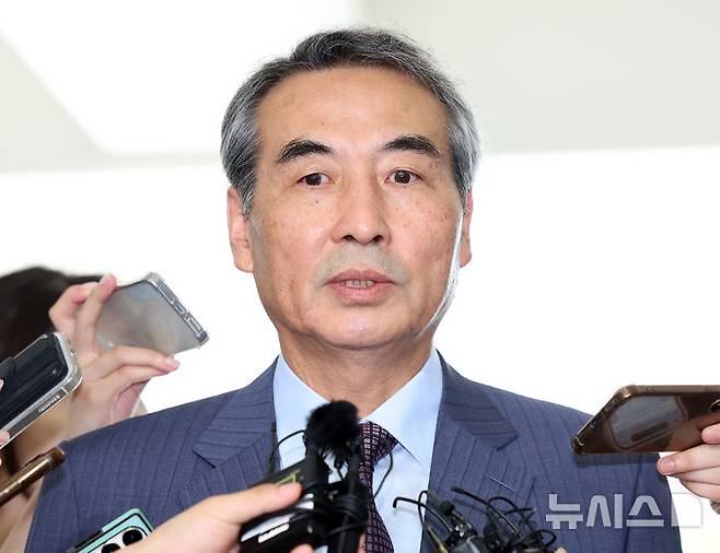 [서울=뉴시스] 이영환 기자 = 윤석열 전 대통령의 부인 김건희 여사 의혹을 수사하는 민중기 특별검사가 1일 오전 서울 서초구 사무실로 출근하며 취재진의 질문에 답하고 있다. 2025.07.01. 20hwan@newsis.com