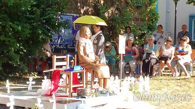 | ▲ 일본군위안부할머니와함께하는 마산창원진해시민모임(대표)은 6월 28일(현지 시각) 독일 본 여성박물관에 설치된 평화의소녀상 '동마이' 앞에 이어, 다음 날 카셀 노이에 브뤼더키르혜 평화의소녀상 '누진'에서 '그녀의 이름은 평화'라는 공연이 펼쳐졌다고 1일 전했다 ⓒ 정갑숙 |