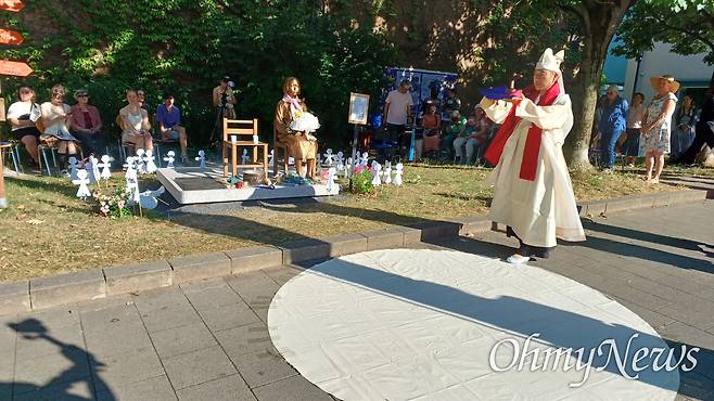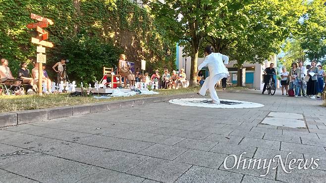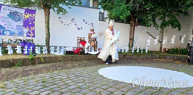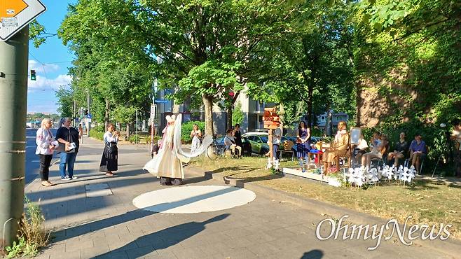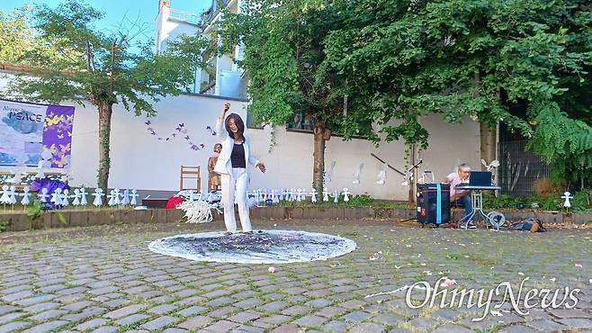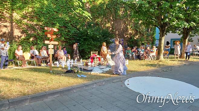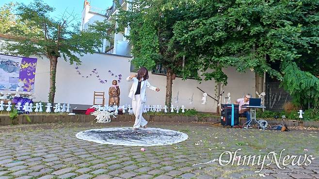 | ▲ 6월 29일 오후 독일 카셀 노이에 브뤼더키르혜 평화의소녀상 '누진'에서 열린 '그녀의 이름은 평화' 공연. |