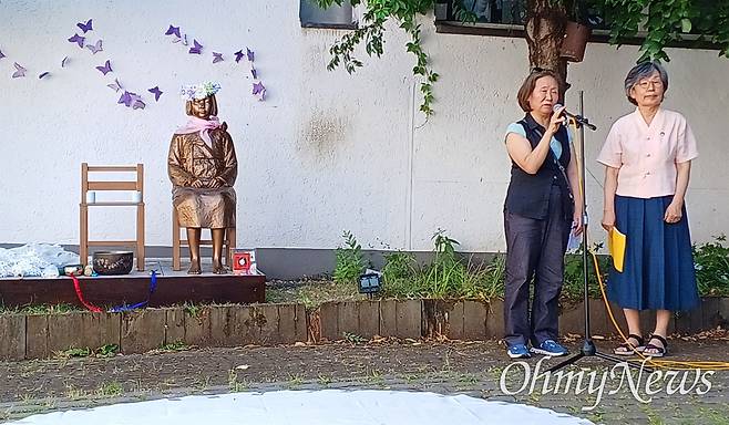 본 여성박물관 마당 한쪽에서는 이날 평화의소녀상 제막식이 함께 열렸다. 해당 평화의소녀상은 지난 3월 쾰른 나치기록박물관에 임시로 설치됐다가 기획전시 기간이 끝난 뒤 이곳으로 옮겨졌다.