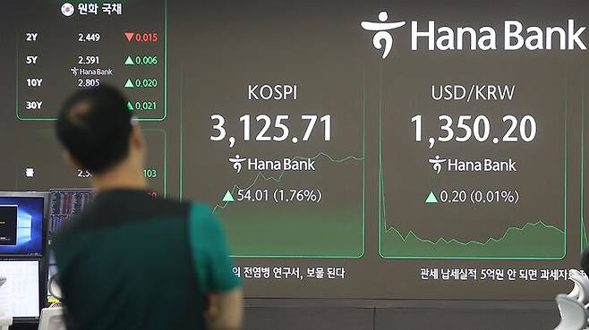 ▲ 1일 서울 중구 하나은행 본점 딜링룸 현황판에 코스피, 원/달러 환율이 표시돼 있다.