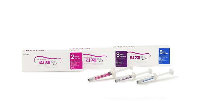 ‘라제안’은 LG화학 고유의 브랜드명으로 ‘콜라겐으로 관절을 편안(安)하게’ 만든다는 메시지를 담고 있습니다. ▲‘라제안 엑스트라’는 6개월내 최대 2회 투약 가능한 2회 제형 제품이며 ▲‘라제안 밸런스’는 3회 제형 ▲‘라제안 클래식’은 5회 제형 제품입니다.