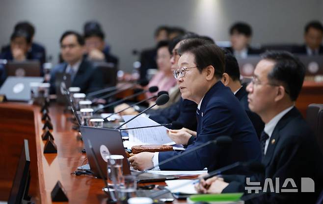 [서울=뉴시스] 고범준 기자 = 이재명 대통령이 1일 서울 용산 대통령실 청사에서 열린 국무회의에서 발언하고 있다. (대통령실통신사진기자단) 2025.07.01. bjko@newsis.com