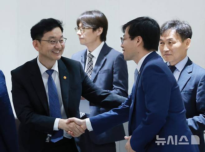 [서울=뉴시스] 고범준 기자 = 윤창렬 국무조정실장과 여한구 산업통상자원부 통상교섭본부장이 1일 서울 용산 대통령실 청사에서 열린 국무회의에서 인사를 하고 있다. (대통령실통신사진기자단) 2025.07.01. bjko@newsis.com