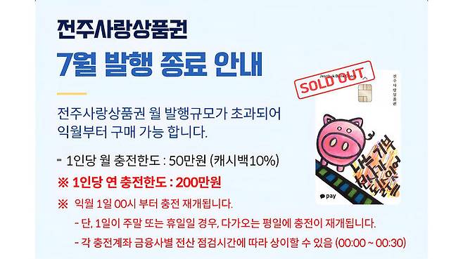 ▲ 전주사랑상품권 7월 발행 종료 안내문