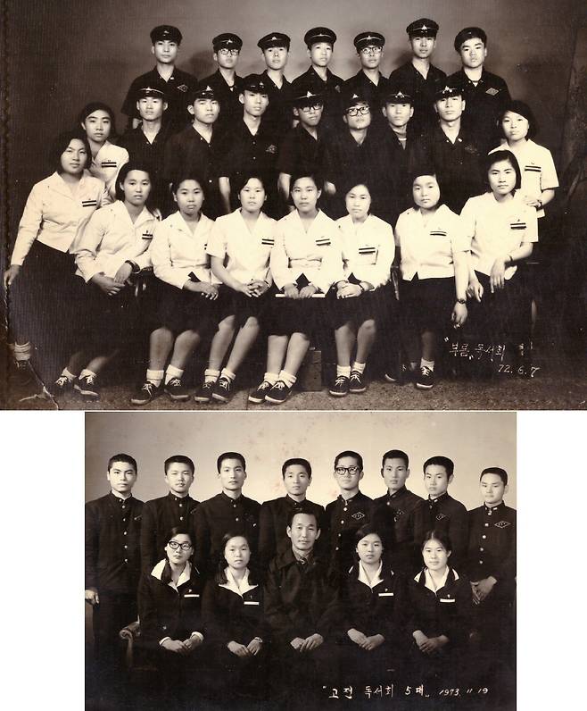 | ▲ 위 사진, 전주고 2년 시절 부름독서회 회원들. 윗줄 맨 왼쪽이 이을호 아래 사진, 전주고 3년 시절 고전독서회 회원들. 윗줄 왼쪽에서 세 번째가 이을호 |