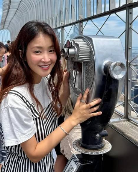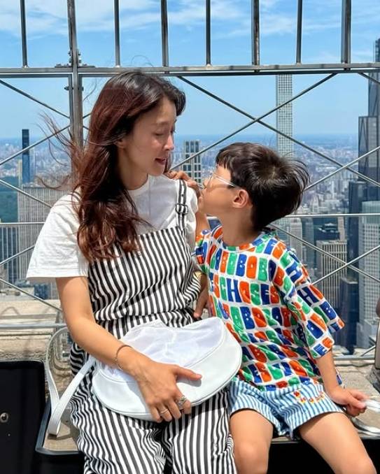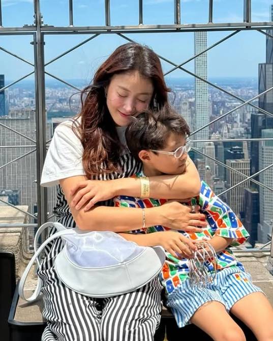 이시영은 "초등학교 때 엄마, 아빠랑 오빠랑 미국여행 가서 엠파이어스테이트 빌딩에 갔던 기억이 아직도 어제처럼 생생한데 제가 초등학교 아들을 데리고 다시 여길 오다니 뭔가 기분이 이상해요. 시간이 정말...ㅎㅎ"이라고 남다른 감회를 전했다.